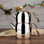 Traditional Turkish tea pot set made of high-quality 18/10 Cr-Ni stainless steel. Thanks to its carefully polished and long-lasting hygienic surfaces, it maintains its brightness and elegance for a long time. It is very easy to use with its fireproof stainless steel stylish handles.