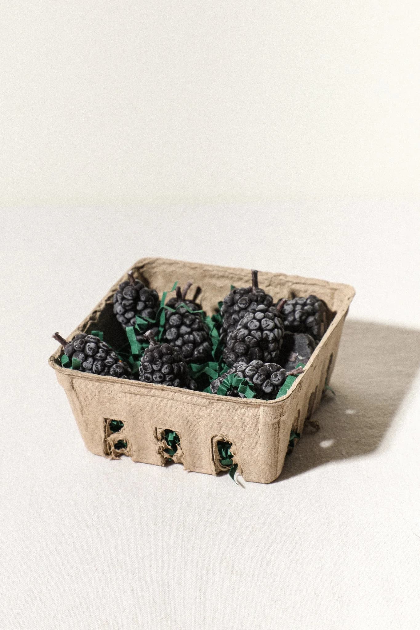 Experience the charm of our Blackberry Birthday Candles, meticulously crafted from pure beeswax harvested from our family-owned hives in scenic Merced, CA. As third-generation beekeepers, we’ve perfected the art of infusing love and heritage into each little flame. I was inspired by my family’s legacy in agriculture when I created these candles. Each candle is uniquely shaped using molds cast from real blackberries! Illuminate your special moments with a touch of warmth, nostalgia, and an irresistible dash of cuteness. 10 or 5 blackberries per box! The packaging for both the 5-count and 10-count includes the berry basket with green crinkle cut inside the brown kraft box.