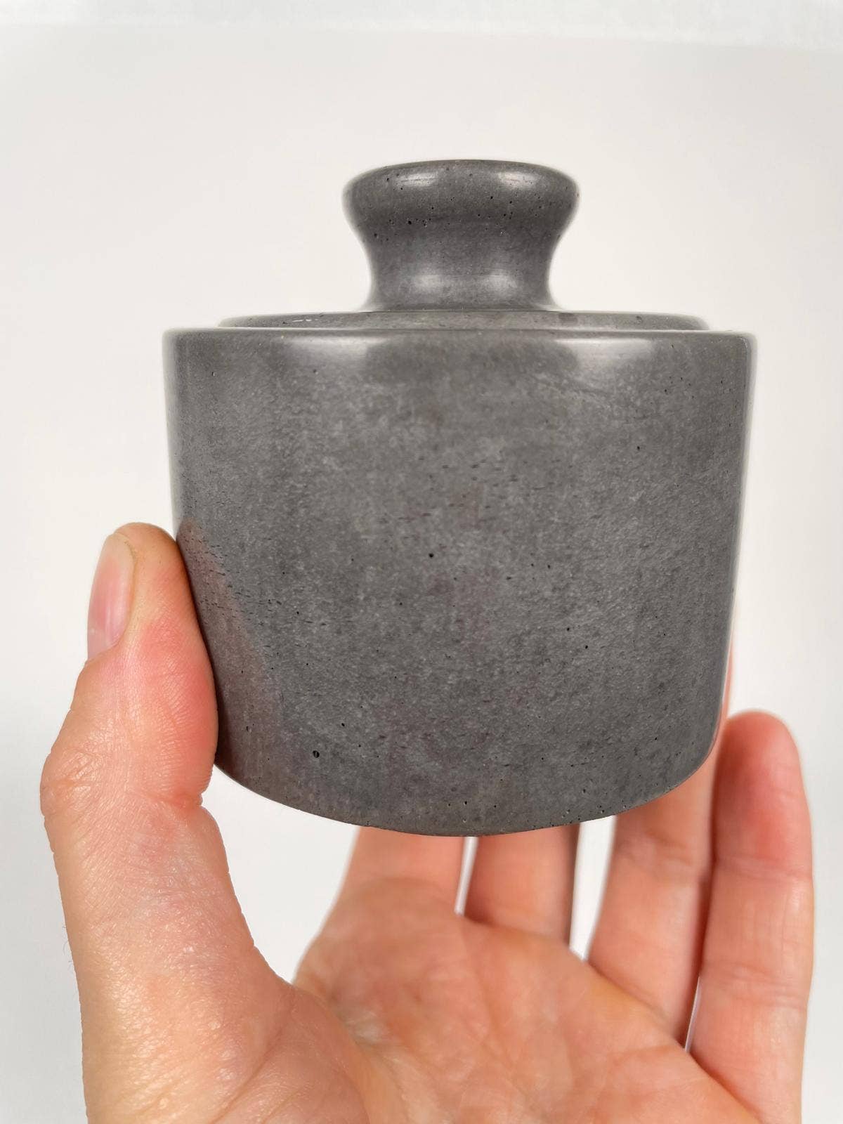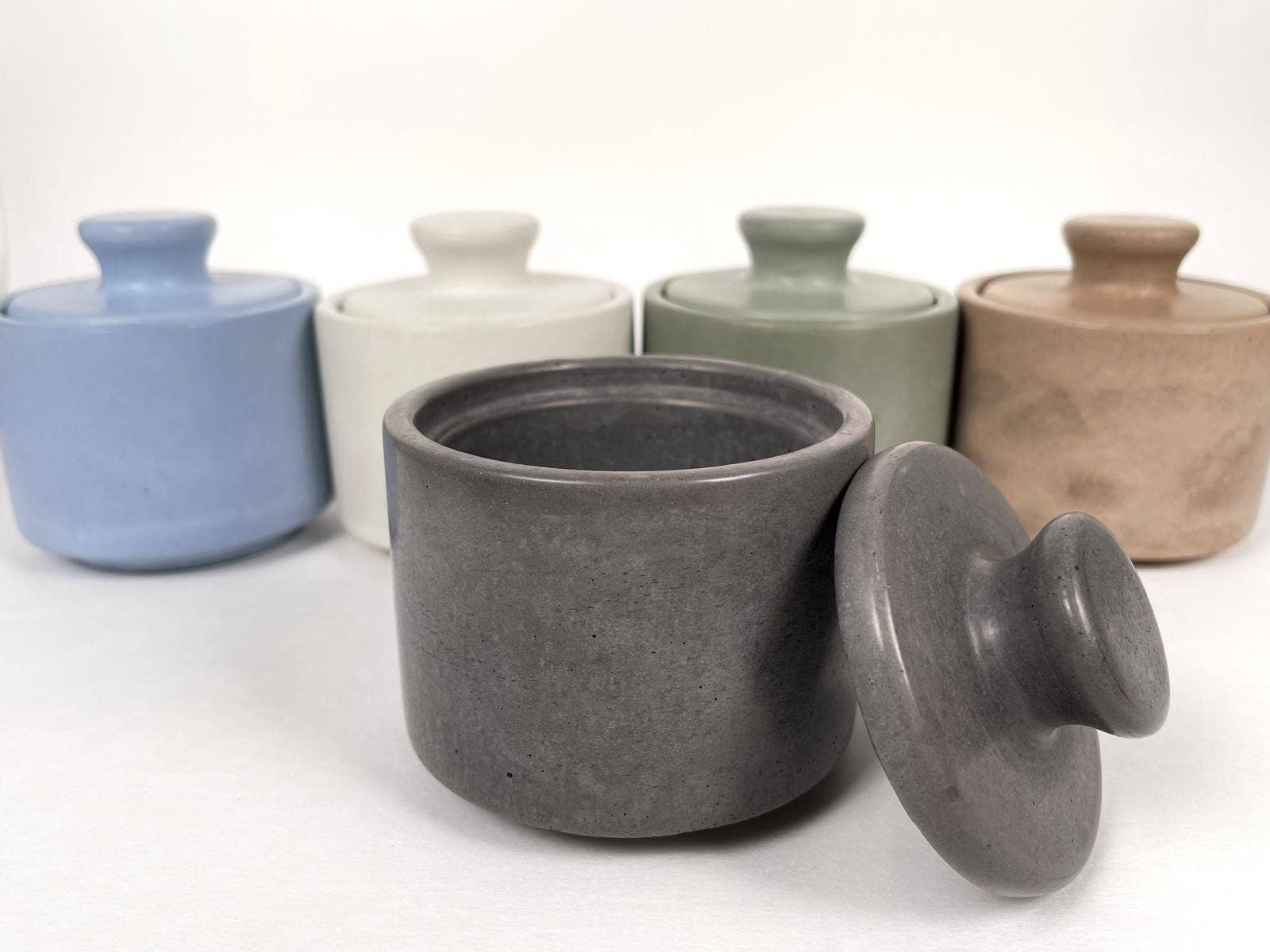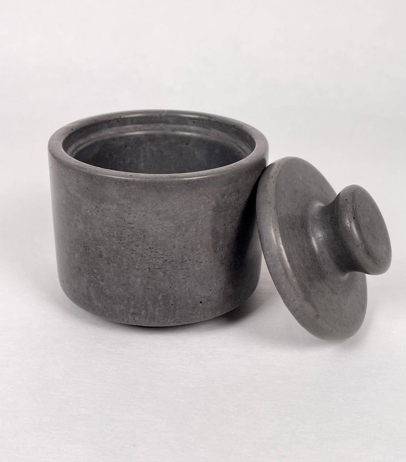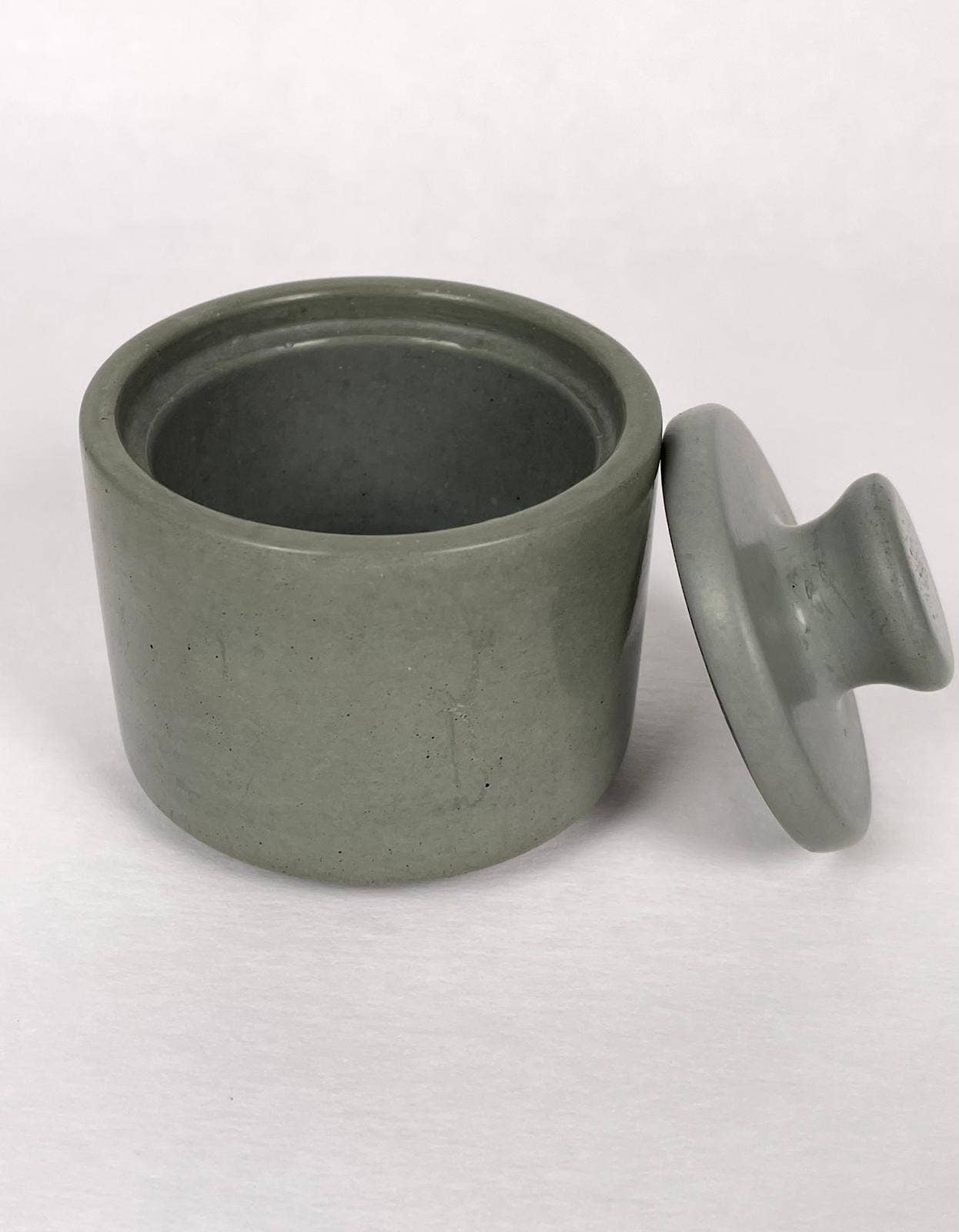 Add elegance to your dining table with our handcrafted concrete salt containers. The fitted lid keeps your finishing salts fresh while the smooth, matte finish brings understated sophistication to any meal. Available in five curated colors – each piece complements both modern and traditional table settings. Perfect for finishing salts, coarse pepper, or specialty seasonings.
