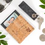 This minimalistic, modern card wallet is the perfect option for everyday use. Constructed from 100% cork and merino wool felt makes this wallet a super sustainable, eco-friendly choice. The wallet holds up to six credit cards and or cash. Streamline enough for your back pocket or toss in your bag and go.