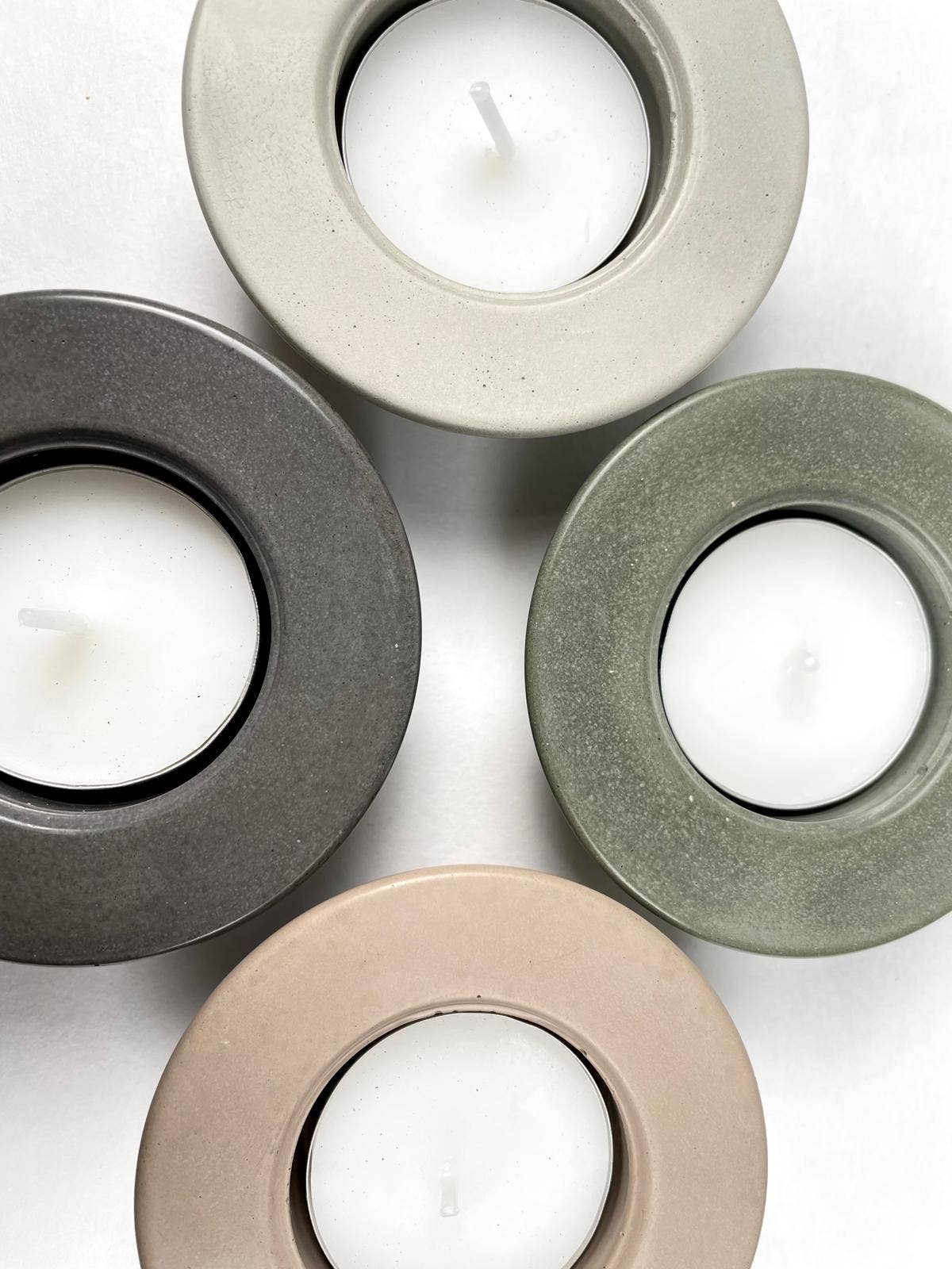 Minimalist design meets natural texture in this handcrafted concrete tea-light holder. The clean, circular silhouette and recessed center create a modern take on candlelight. The low-profile design makes it perfect for styling on coffee tables, mantels, or as part of a larger candle arrangement.