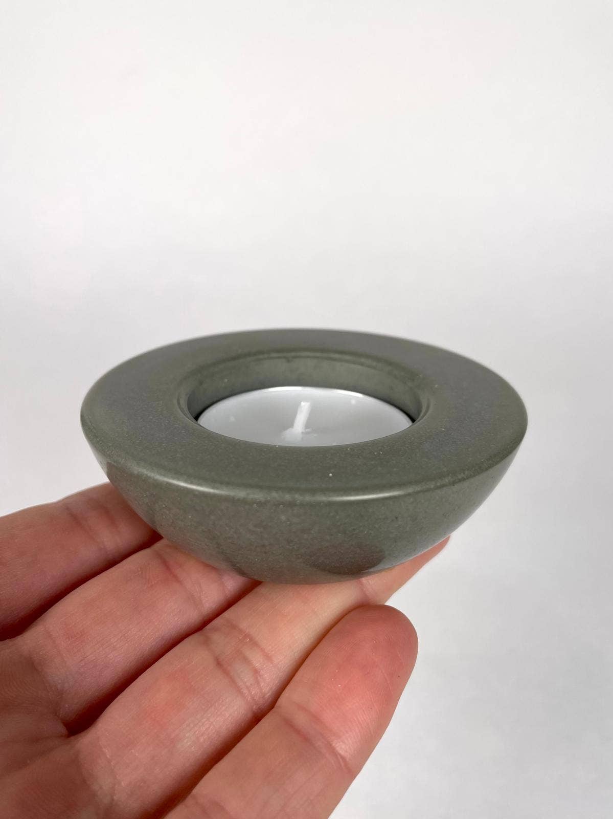 Minimalist design meets natural texture in this handcrafted concrete tea-light holder. The clean, circular silhouette and recessed center create a modern take on candlelight. The low-profile design makes it perfect for styling on coffee tables, mantels, or as part of a larger candle arrangement.