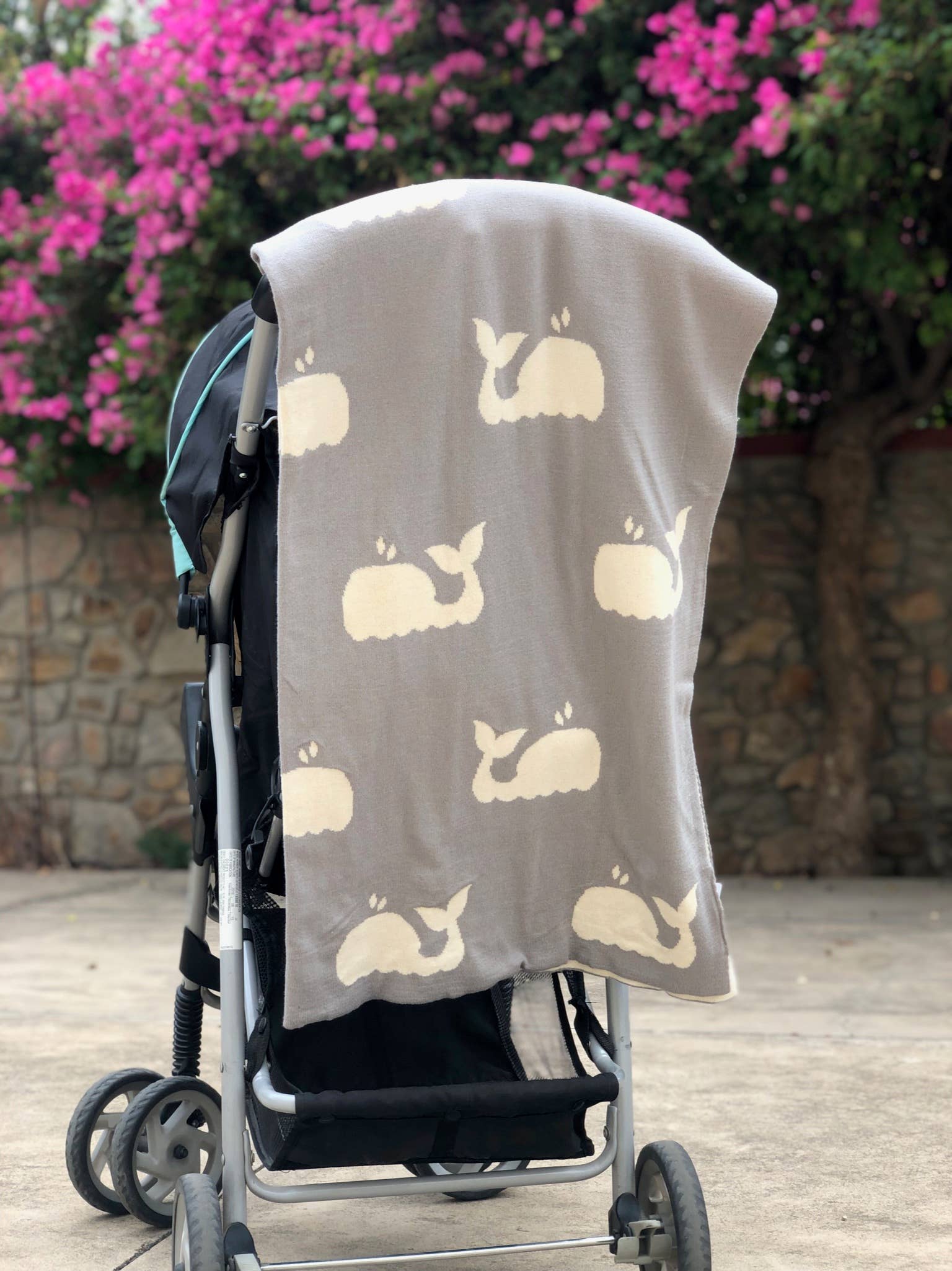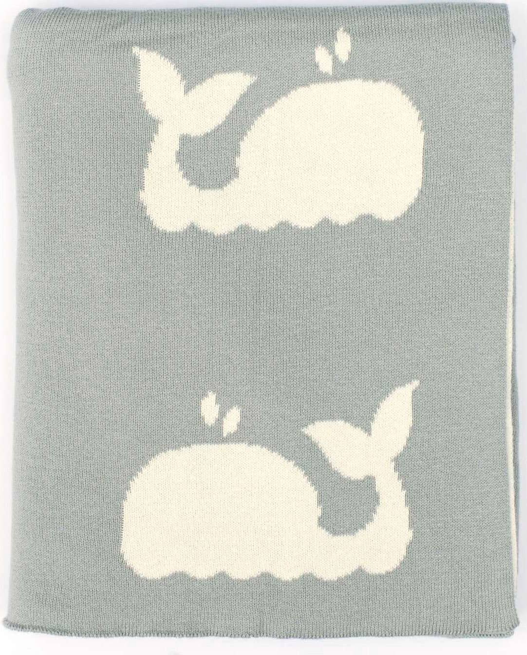 Our adorable whale baby blanket is the perfect companion for your little one. Use it on a stroller or as a receiving blanket, our knitted baby blanket in 100% combed cotton is a keepsake.