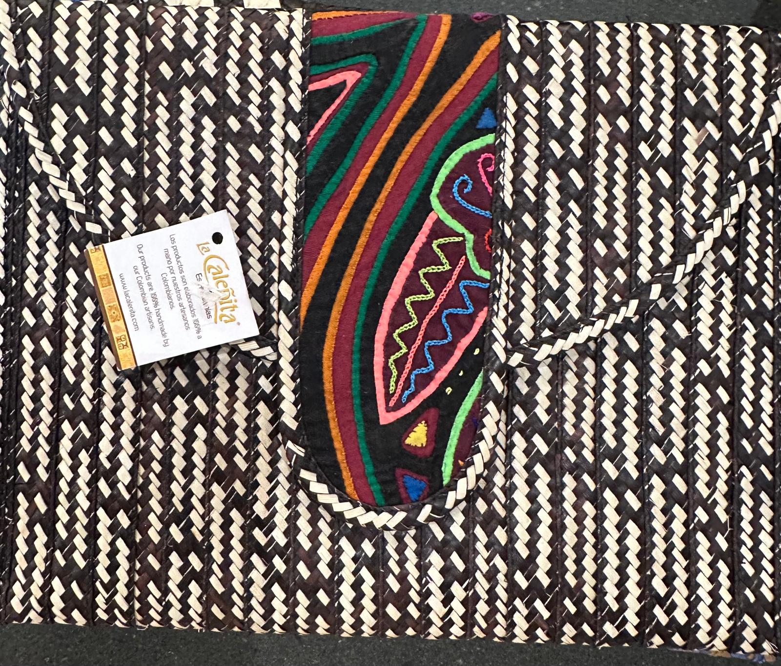 The clutch-style bags are often called mochilas in Colombia and are a cultural symbol for the country, with different designs and materials representing various indigenous communities.